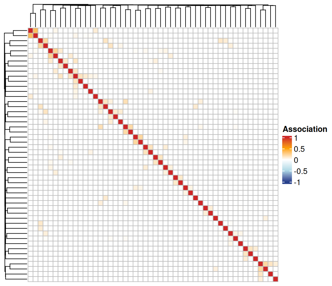 prop_est <- as(rho_shrink_est(t(assay(tse, "clr"))), "matrix")