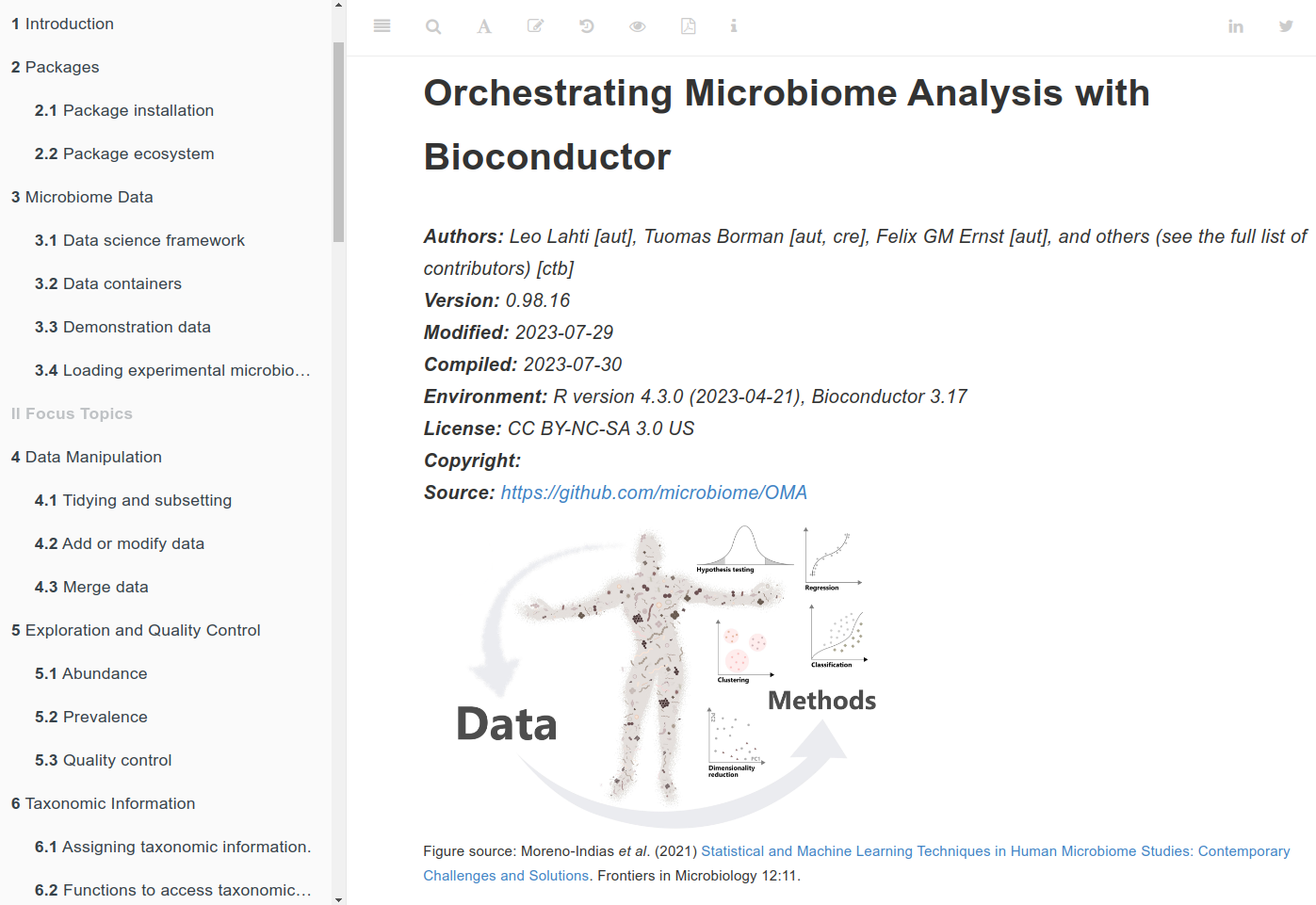 Complements other Bioconductor Gitbooks; overlapping methods and analysis strategies: microbiome.github.io/OMA