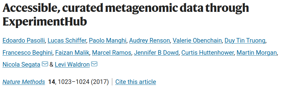 Open microbiome data sets readily available in TreeSummarizedExperiment format via curatedMetagenomicData, EBI MGnify, Bioconductor ExperimentHub, and packages.